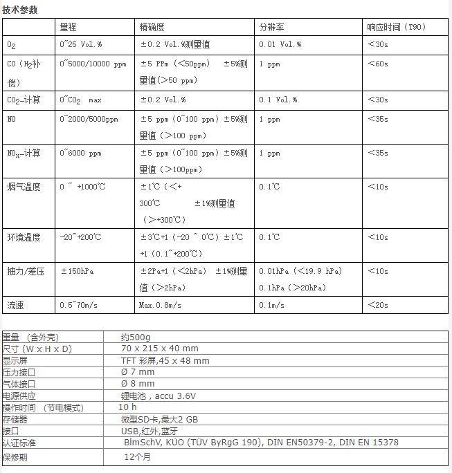 E30x O2,CO/H2,NO(NOx),烟气温度,环境温度,抽力/压差(仅仪器)